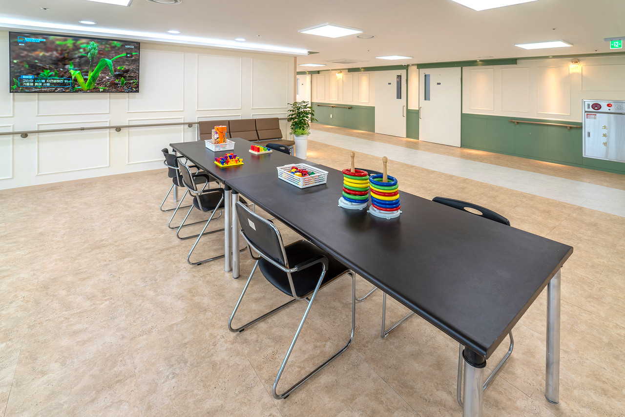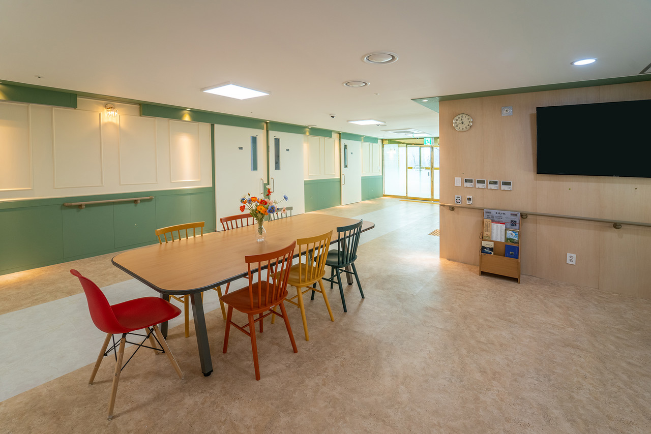 ‘골든브릿지 친구가있는집 재활요양원’의 모든 시설은 어르신들의 눈높이에서 설계되었습니다. 거동이 불편하신 어르신들을 위한 높이의 인테리어는 물론 곳곳에 배치된 보호 난간 등이 어르신들의 생활을 안전하게 보조합니다.
